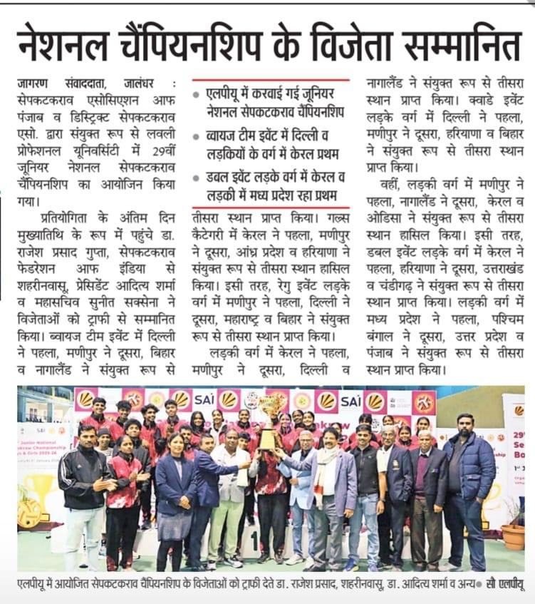 INVITED as a chief guest in Lovely professional university Jalandhar, for closing ceremony of 29th junior National SEPAKTAKRAW Championship, Thanks to Federation for inviting me